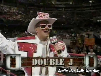 So what did he do after the NWA experiment? He…went back to being a country music singer. Wait, what? Yes, Jeff Jarrett, Mr. Work-Shoot, NWA born and bred himself  went right back to the country music crooner gimmick, once again calling himself Double J Jeff Jarrett, complete with annoying spelling and crappy laugh. Only now he was joined by Robert Fuller as (and I’m not making this up one bit) Tennessee Lee and a light-up ring jacket/glasses combo that makes Jericho’s LED jacket look straight by comparison.