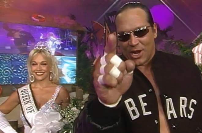 - Sullivan tries to hit Benoit with a tiki bar while Benoit successfully knocks over a lifeguard stand containing Jimmy Hart. All of that is true